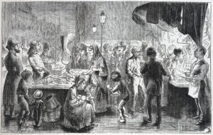 4) Likewise I sacrificed a planned chapter on market streets as described in the sensation journalism that was a corollary of Victorian sensation fiction. Senses (the markets’ appeal to/assault upon the eye, ear and nose) get plenty of attention in the final draft, as do journalistic accounts, but sensation slipped away so that a literary analysis of ‘sensation accounts of street markets on a Saturday night’ was abandoned.