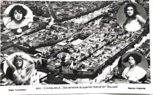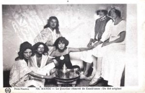 The most famous quartier réservé (red-light district) in North Africa was Bousbir in Casablanca. Home to hundreds of sex workers and located a few miles from the city, Bousbir was surrounded by high stone walls. Armed guards manned its only gate to keep the women contained within. According to a Maury and Mathieu’s study of Bousbir, 71% of the more than 640 women worked in the roughly 44 brothels. These mostly employed Moroccan women, although one was solely European.