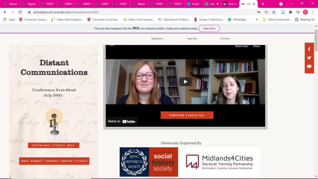 What does it mean to communicate across distance, across time and space? And how have societies engaged with distant communications over time, from the Middle Ages to the present day? Our conference came from a desire to place distance at the forefront of historical enquiry. While our experiences of the pandemic and lockdowns is culturally unique to our own time, space and place, people have faced separation and distance for the span of time, at the very least through the separation of death.