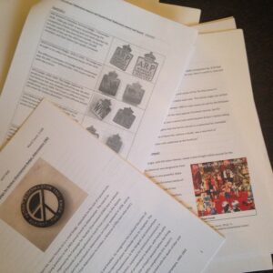 Each object is linked to themes and topics we cover on the course – allowing us to have an ‘object of the week’ to discuss as an ice breaker. In week one, students are encouraged to examine several objects in detail to come up with their own ideas about what the object is and what cause or organisation it might be linked to (no googling allowed until the end of the session!). Handling physical objects can provide a tangible link to the past, allowing students to think about the experiences of those who might have used or worn the objects, but whose stories might not have survived in written form.