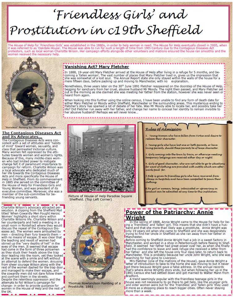 A focus on sex and gender also enabled me to make use of some fabulous Sheffield collections. These include the papers of Mary-Anne Rawson, a Sheffield abolitionist, which allow for discussions of separate spheres, women in public, women and politics, representations of enslaved women and issues of voice. The visit to Sheffield of Frederick Douglas to Rawson’s home in 1846 provides an excellent way in to discussions of the partiality of, and racism inherent within, British abolitionists’ accounts. The Mary Anne Rawson Papers are part of the much larger HJ Wilson Collection. Wilson was Rawson’s nephew and a Liberal MP for Holmfirth, and his wife, Charlotte, was also politically active, as a liberal feminist, and particularly in the campaign against the Contagious Diseases Acts and related measures to rescue ‘fallen women’. The CD Acts, introduced in the 1860s to deal with the problem of venereal disease in the armed forces, were based on specific understandings of male and female sexuality: that men need sex — and that a clean supply of women had to be provided for them; that ‘natural’ women were pure, sexless ‘angels in the house’. Students are taken aback at these debates, at the difference between eighteenth and nineteenth-century ideas, and that feminists have been discussing the sexual double standard for so long.