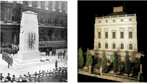 The legacies of the war are numerous and evident throughout the house; from Jagger’s bust of Haig in the upper hall to the photograph of an unknown Tommy by a maid’s bed, but they are all safely contained within its walls. The dolls’ house is a time capsule, preserving a way of life that many felt had already been lost in the war, but the painstaking reconstruction incorporated the conflict’s raw reality into a domestic setting in which it could be contained. The wartime protests of men such as Nevinson and Orpen were pushed back into the past and their miniature contributions were evidence of a return to the order and stability of peacetime.