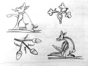 At the initial stage of my research, I engaged in sketching and reading a detailed description of the manuscript, including what is known about its history and about each decorated page, so I could identify what I was interested in.
